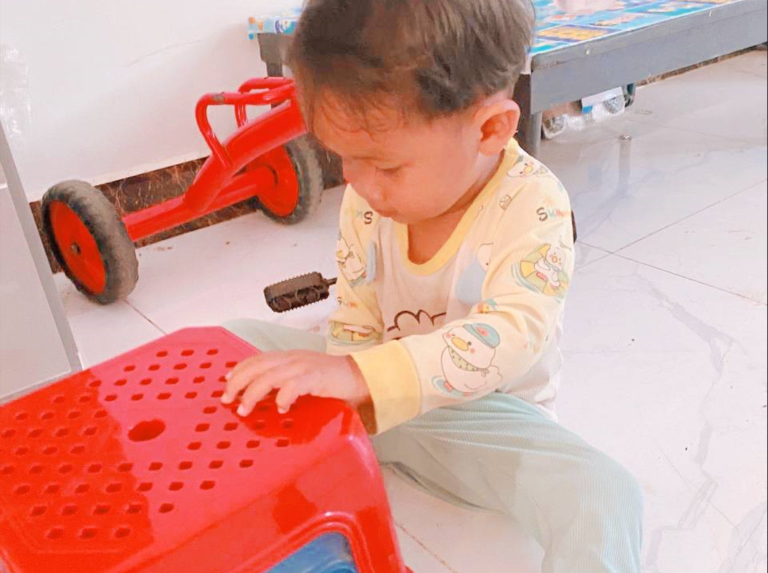 Then came the real challenge. The blue stool was stuck inside the red one. He pulled. He twisted. His face scrunched up with effort. I almost helped him, but I stopped myself. This struggle? This was learning.