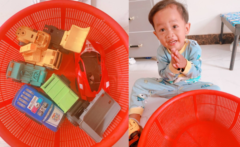 I walked to the bedroom, found the yellow car under his pillow, and brought it back. His tears stopped immediately. He smiled, clapped his hands, and carefully placed the yellow car back in the basket with all the other toys.