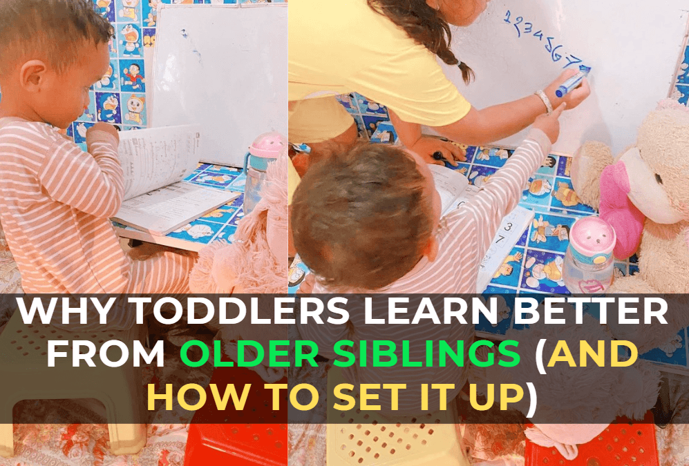 Toddlers don’t push back against older siblings the way they push back against parents. Learning feels like play, not a task.